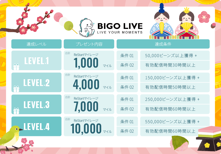 目標を達成したライバー全員にボーナスとしてReStartマイルをプレゼント✨️
